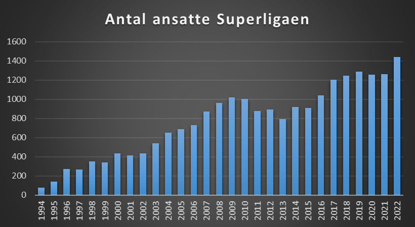 Superligaen rundede i 2009 1000 ansatte og i 2022 sattes ny rekord med over 1400 ansatte