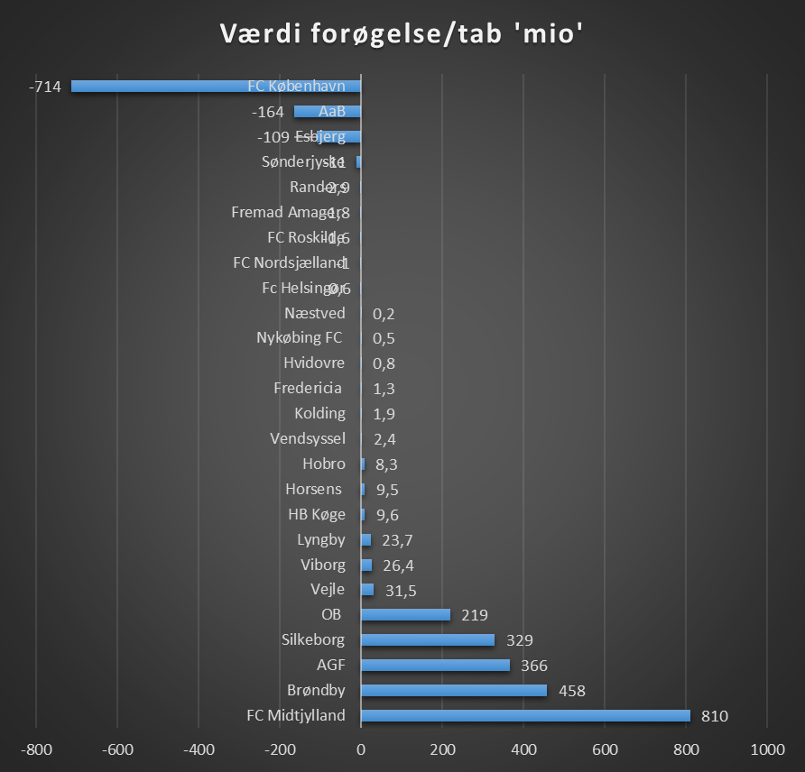 Fem klubber har siden 2015 oplevet en ganske pæn forøgelse af klubbens værdi, mens andre klubber omvendt er faldet i værdi.