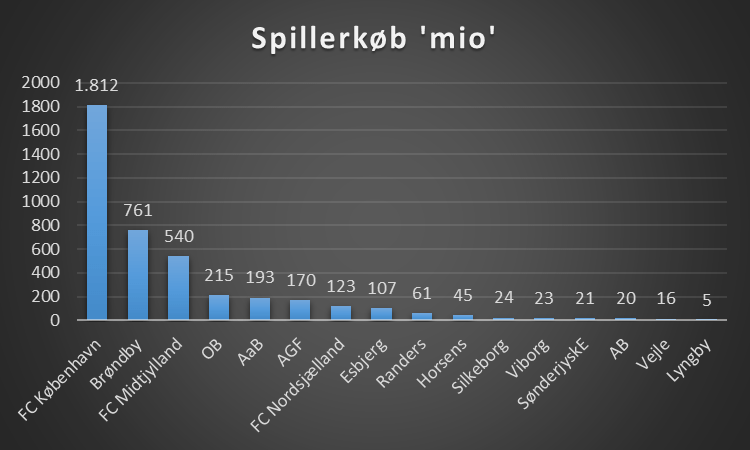 Hvis der ses på hvilke klubber der har købt mest ind historisk set, ja så er FC København den store spiller på markedet, men det er dog FC Midtjylland der har brugt flest penge på spillerkøb det ene år.