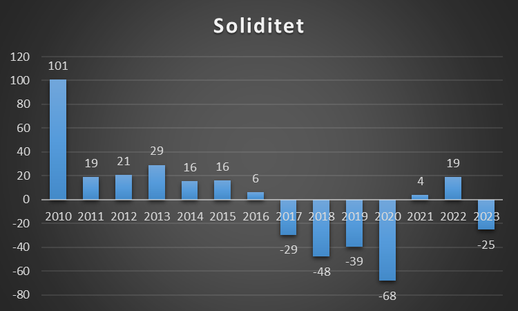 En soliditetsgrad på 0 er også sjældent godt, da klubben har finansieret alle sine aktiver med fremmed kapital. Det gør gør klubben meget skrøbelig overfor økonomisk modgang, da der ikke skal meget til, før de ikke kan betale sine økonomiske forpligtelser.