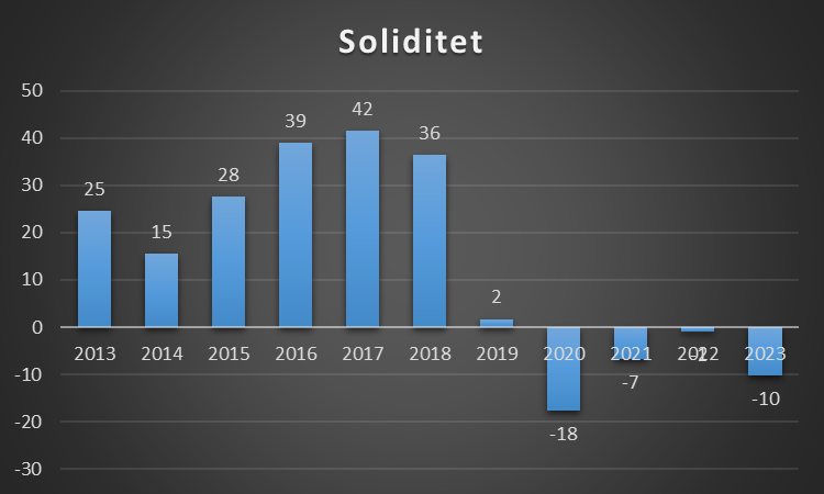 En soliditetsgrad på 0 er også sjældent godt, da klubben har finansieret alle sine aktiver med fremmed kapital. Det gør gør klubben meget skrøbelig overfor økonomisk modgang, da der ikke skal meget til, før de ikke kan betale sine økonomiske forpligtelser.