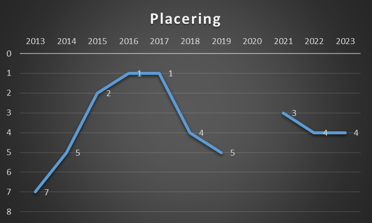 Ses der på resultaterne fra 2015-2022, så er sammenhængen mellem gennemsnitlige placering og gennemsnitlige personaleomkostninger på 84%.