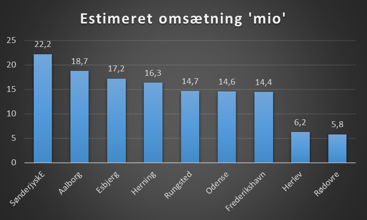Klubben oplyser ikke i regnskabet hvad omsætningen er, dette er klubben i sin gode ret til, derfor er det et estimeret bud på hvad omsætning kunne være.