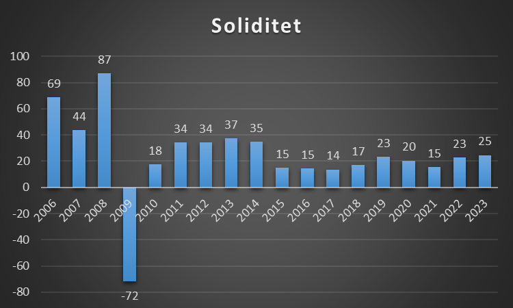 En soliditetsgrad på 0 er også sjældent godt, da klubben har finansieret alle sine aktiver med fremmed kapital. Det gør gør klubben meget skrøbelig overfor økonomisk modgang, da der ikke skal meget til, før de ikke kan betale sine økonomiske forpligtelser.
