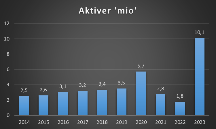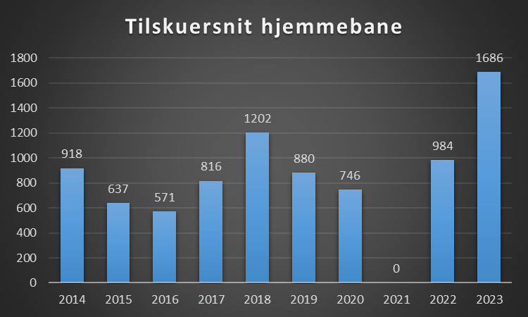 Tallet for 2021 er ikke medtaget (Covid19 sæsonen) og står som 0.
