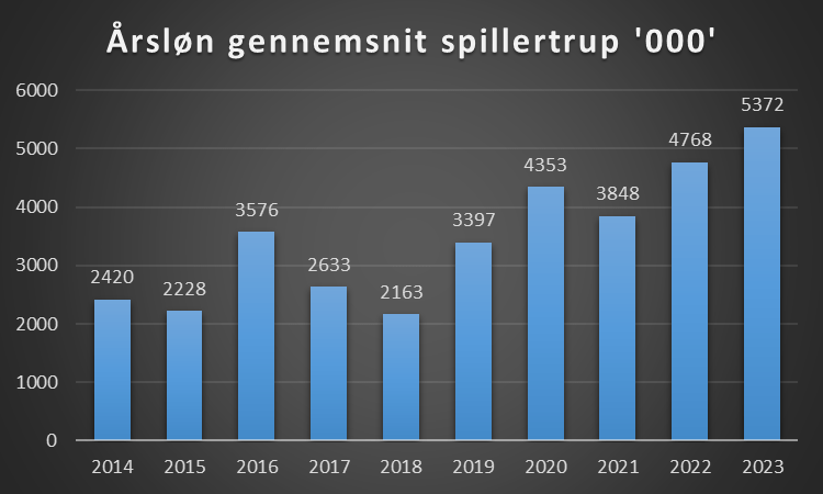 Årsløn gennemsnit spillertrup