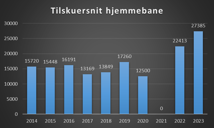 Tallet for 2021 er ikke medtaget (Covid19 sæsonen) og står som 0.