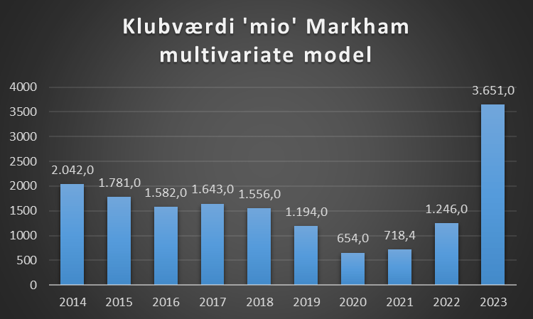 Så skulle du købe klubben, vil en pris være i omegnen af 3,5 mia. Værdien af aktierne er dog i 1,2 mia
