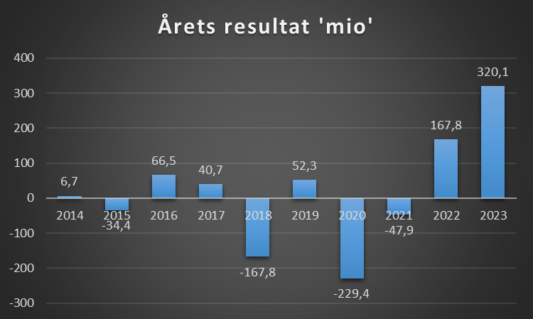 Koncernen har igen i 2023 udbetalt udbytte, i alt 98,7 mio eller 10kr pr aktie, det vil sige der er udbetalt knap 200 mio til de der har FCK aktier de seneste to år.