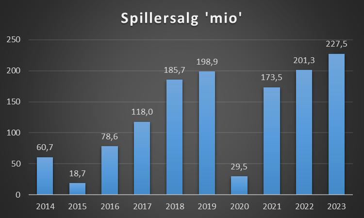 | Spillersalg | Klubben har solgt spillere for 227 mio, det er andet regnskab klubben er over 200 mio |