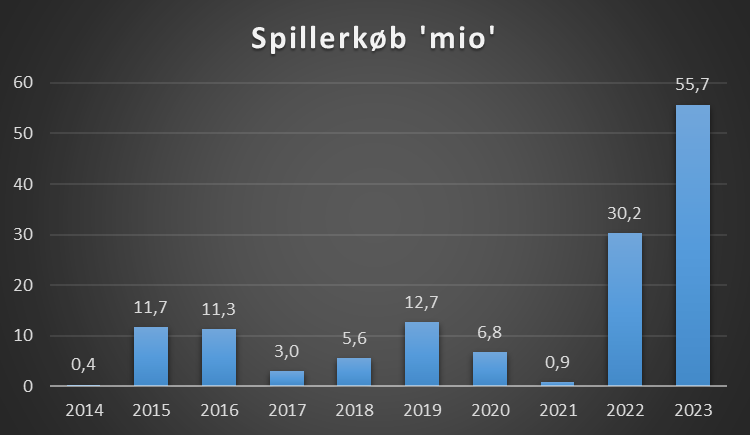 FC Nordsjælland har ligeså lavet et strategisk skift, klubben er fortsat dygtige til at udvikle spillere, men klubben er også begyndt at købe spillere! De seneste to regnskaber er der købt spillere for 85 mio og det er i kontrast til de ti foregående regnskaber inden da, hvor der blev købt for 73 mio.