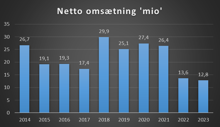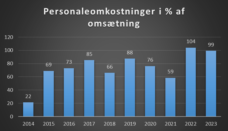| Rød | 4 af sidste 5 regnskaber har giver underskud Soliditet er på -595 Løn udgør 99% af omsætningen Gælden udgør 695% af aktiverne Gælden er steget med knapt 5 mio til 16,4 Egenkapital er negativ på 14 mio (8,6 mio året før) |