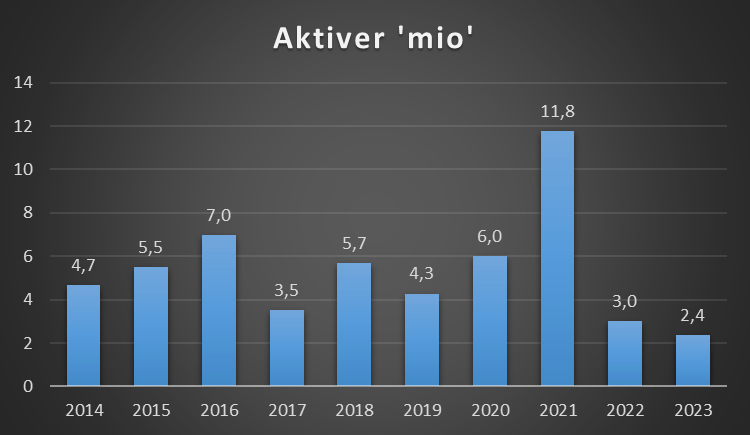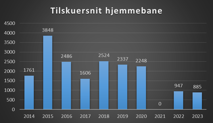Tallet for 2021 er ikke medtaget (Covid19 sæsonen) og står som 0.
