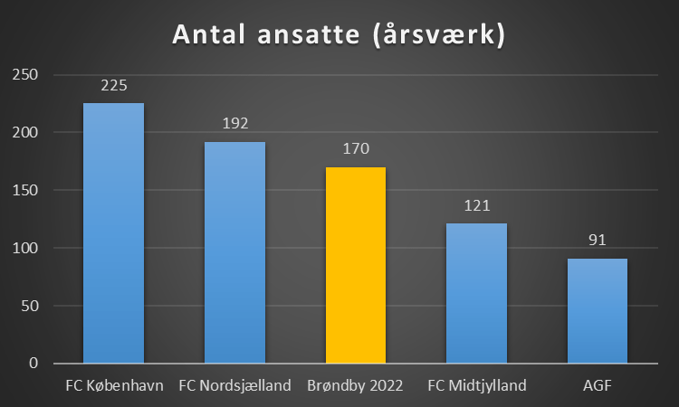 Her er det interessante at FCM ligger over Brøndby i personaleomkostninger, men har færre ansatte. I dette ligger der at FCM har et hold der nok har en markant højere løn end Brøndby!