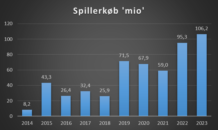 At klubben har ambitioner viser at der i de seneste to regnskaber er købt spillere for over 200 mio!