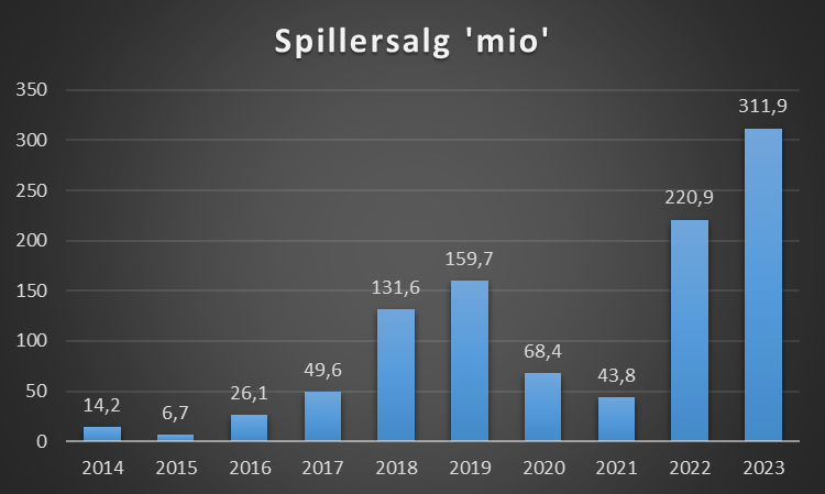 Klubben oplyser ikke spillersalg i deres regnskab, derfor er det med et stort forbehold nedenstående