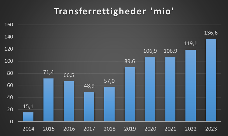 Bliver en spiller købt eller solgt for 18 mio på en treårig kontrakt, så kan det være en aftale hvor betalinger sker i rater, således at de 18 mio ikke optræder i regnskabet, men 6 mio spredt over 3 regnskaber. Nedenstående er således en oversigt over transferbeløb der kommer ind og ud det enkelte regnskab.
