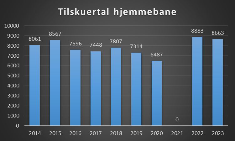 Tallet for 2021 er ikke medtaget (Covid19 sæsonen) og står som 0.