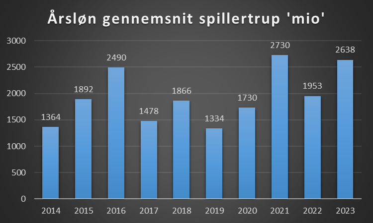 At en årsløn kan svinge meget fra det ene til det andet år, skal forstås som at der ved sportslig succes er bonus ved at vinde et DM eller kval til Champions League gruppespil.