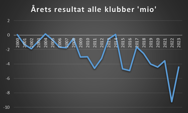 Ses der på hvad en klub taber gennemsnit det enkelte år, er udviklingen således