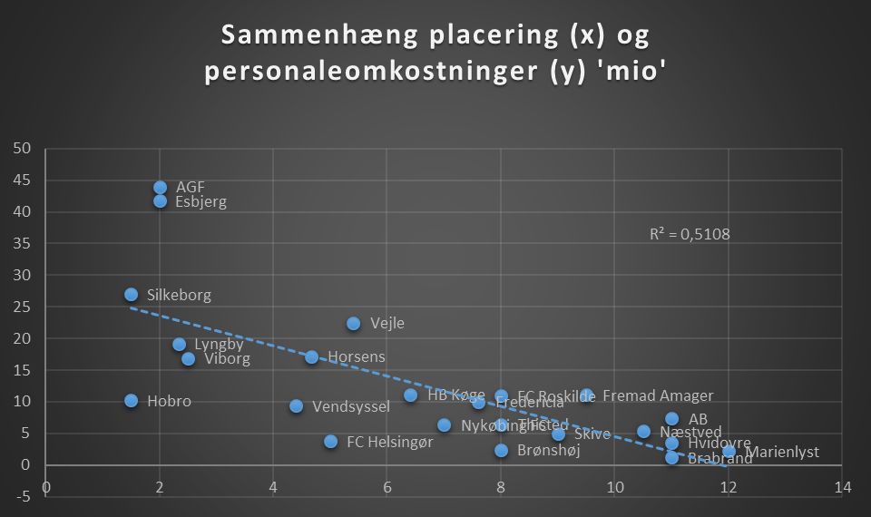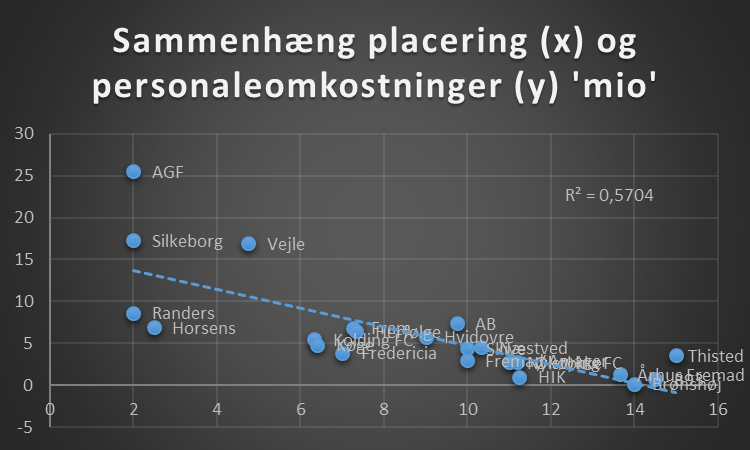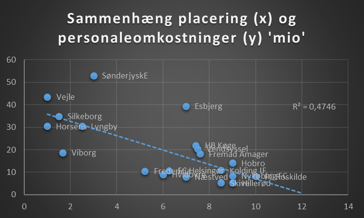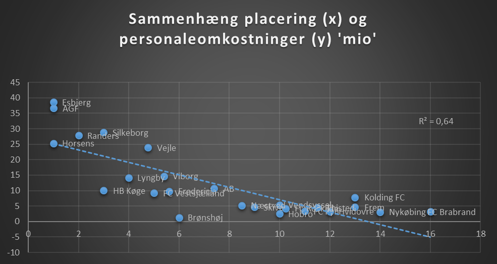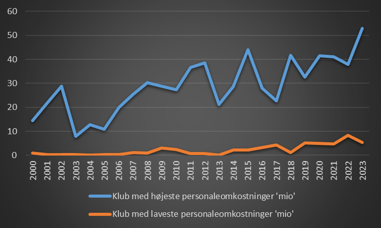 Det som ligeså er interessant er at se hvad er forskellen mellem top og bund, så herunder ev oversigt over den klub med de højeste personaleomkostninger holdt op mod klubben med de laveste personaleomkostninger.