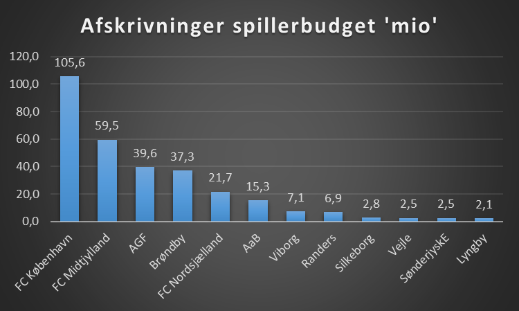 De årlige afskrivninger giver et billede på hvor meget klubberne har investeret i truppen, og dette tal er den ene del af spillerbudgettet.