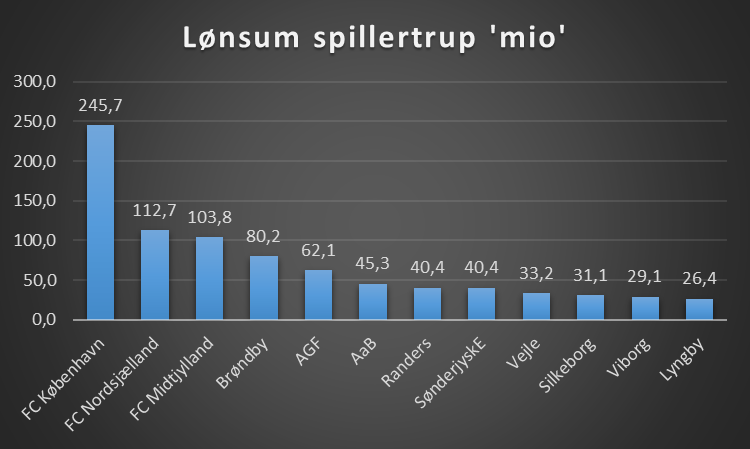 Da klubberne ikke oplyser deres lønsum til spillertrupperne i deres regnskaber, hvad de er i deres gode ret til, så er nedenstående et estimat med afsæt i de regnskaber faktisk findes i regnskaberne.