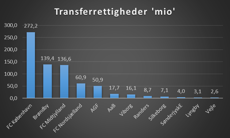 Dette dækker over værdien over spillertruppen, og fortæller hvor meget klubberne har købt spillere for. Spillernes værdi afskrives linært, således at en spiller købt til 20 mio på en 4 årig kontrakt, så bliver transferrettighederne afskrevet med 5 mio om året.