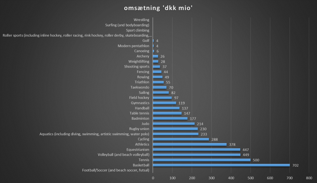 Der kunne også ses på hvad er verdensforbundets omsætning, og her er der nok nogle sportsgrene der springer i øjnene som meget lave.
