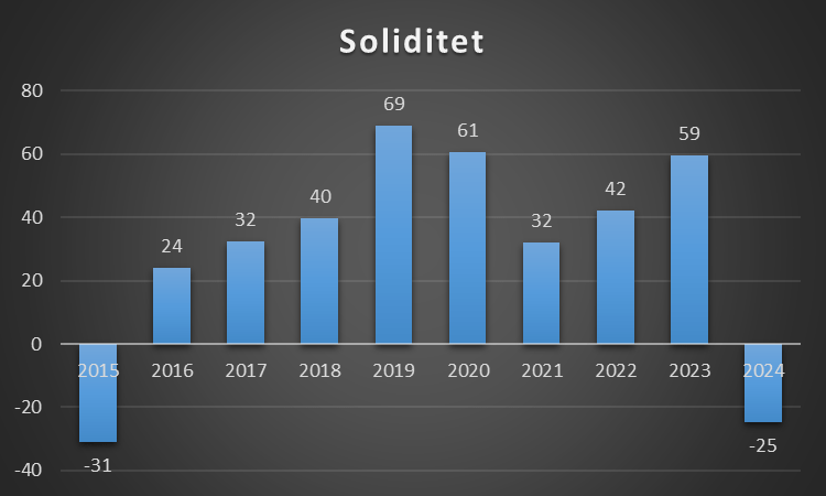 En soliditetsgrad på 0 er også sjældent godt, da klubben har finansieret alle sine aktiver med fremmed kapital. Det gør gør klubben meget skrøbelig overfor økonomisk modgang, da der ikke skal meget til, før de ikke kan betale sine økonomiske forpligtelser.