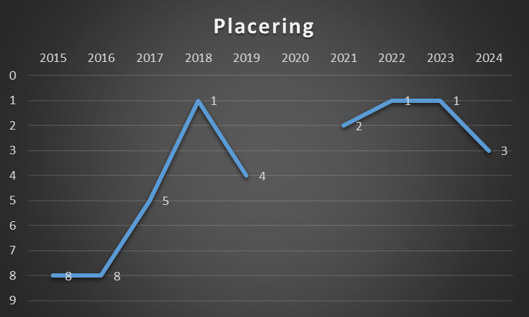 Ses der på resultaterne fra 2019-2023, så er sammenhængen mellem gennemsnitlige placering og gennemsnitlige personaleomkostninger på 66%.
