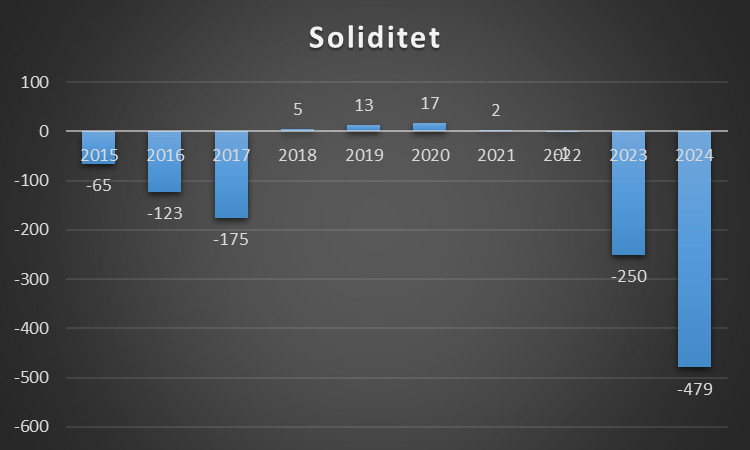 En soliditetsgrad på 0 er også sjældent godt, da klubben har finansieret alle sine aktiver med fremmed kapital. Det gør gør klubben meget skrøbelig overfor økonomisk modgang, da der ikke skal meget til, før de ikke kan betale sine økonomiske forpligtelser.