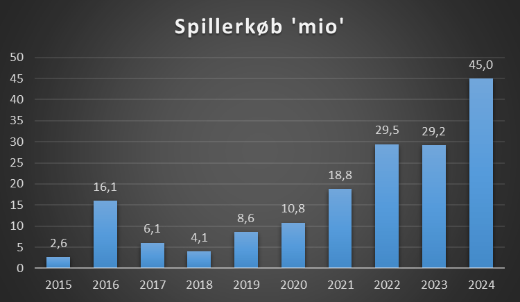 Dette er lønsum spillertrup + afskrivninger spillertrup. Lønsummen for spillertrup er ikke oplyst og er derfor et estimat baseret på de oplysninger der er i regnskab i forhold til antal kontraktansatte mm.