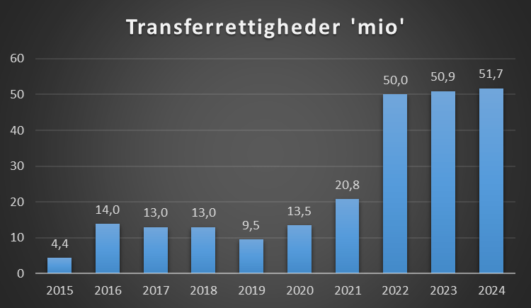 En klub kan opgøre transferrettighederne, eller det som også hedder immaterielle rettigheder forskelligt. Som udgangspunkt skal det forstås som den værdi klubben har lagt ind i truppen.