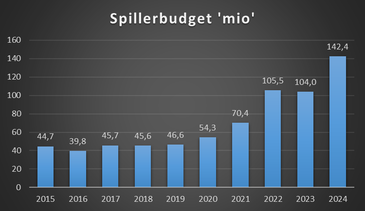 Dette er lønsum spillertrup + afskrivninger spillertrup. Lønsummen for spillertrup er ikke oplyst og er derfor et estimat baseret på de oplysninger der er i regnskab i forhold til antal kontraktansatte mm.