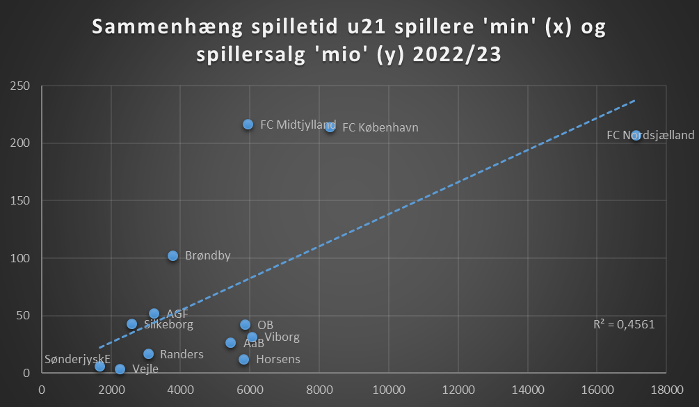 Er der egentlig en sammenhæng mellem hvor meget spilletid en klub giver til u21 spillere og klubbens spillersalg?