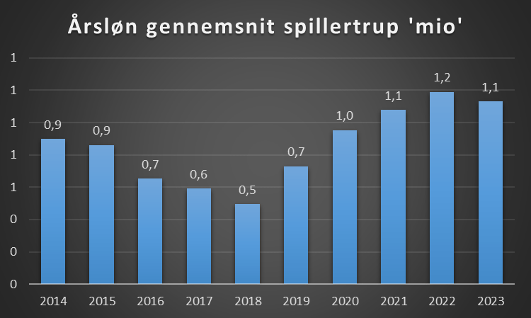 Dette er lønsum spillertrup + afskrivninger spillertrup. Lønsummen for spillertrup er ikke oplyst og er derfor et estimat baseret på de oplysninger der er i regnskab i forhold til antal kontraktansatte mm.