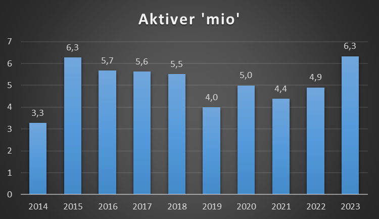 Klubben oplyser ikke i deres regnskab hvad dette er siden 2017, så det er et estimat herefter. Efter at have ligget på cirka samme niveau, har klubben taget et godt skridt opad!