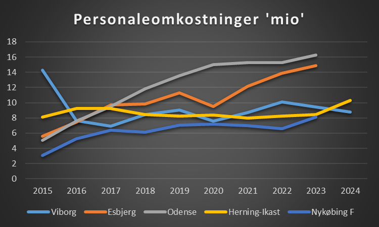 Da mange af klubberne endnu ikke er kommet med deres 2024 regnskab, så bliver det kun dette overblik på udviklingen på personaleomkostninger.