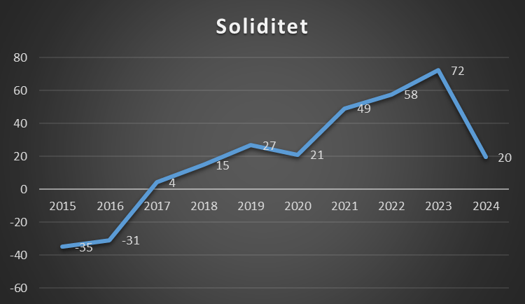 En soliditetsgrad på 0 er også sjældent godt, da klubben har finansieret alle sine aktiver med fremmed kapital. Det gør gør klubben meget skrøbelig overfor økonomisk modgang, da der ikke skal meget til, før de ikke kan betale sine økonomiske forpligtelser.