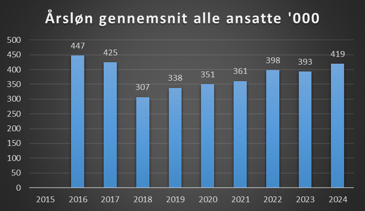 Der er kommet flere ansatte til. Dette tal dækker over antal årsværk. Dog er det interessant at se at de seneste mange år er der ikke den store ændring, dette kan hænge sammen med lønloft på spillertruppen