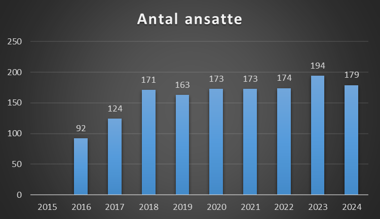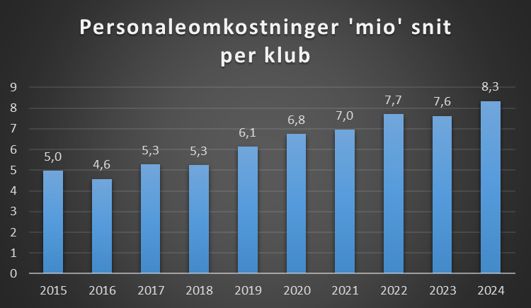 Der er kommet flere ansatte til. Dette tal dækker over antal årsværk. Dog er det interessant at se at de seneste mange år er der ikke den store ændring, dette kan hænge sammen med lønloft på spillertruppen