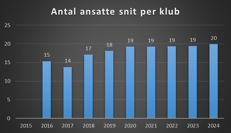 Antallet af ansatte i hver klub ligger meget stabilt,