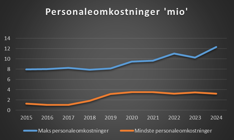 Det er interessant at se at den gennemsnitslønnen faktisk ligger ret ens henunder de 10 år