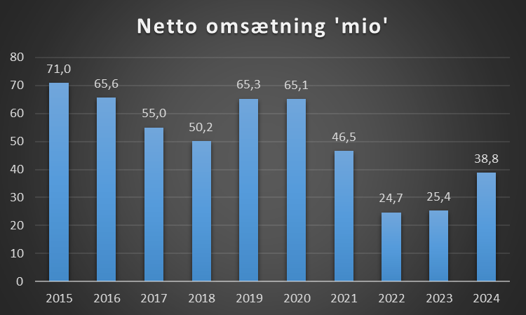 | Grøn | Omsætning er øget til 38 mio fra 25 mio Gælden er faldet 4 mio til 19 mio 1000 flere tilskuere i 2024 end i 2022 |