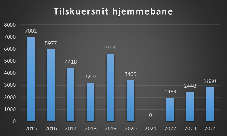 Tallet for 2021 er ikke medtaget (Covid19 sæsonen) og står som 0.