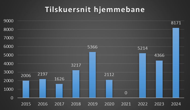| Grøn | Omsætning er steget med 15 mio Højeste tilskuertal med 8171 ( 4366 året før 1.div) |