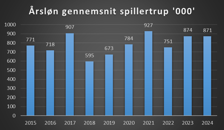 Dette er lønsum spillertrup + afskrivninger spillertrup. Lønsummen for spillertrup er ikke oplyst og er derfor et estimat baseret på de oplysninger der er i regnskab i forhold til antal kontraktansatte mm.
