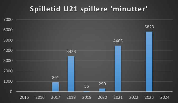 Jo mere spilletid, jo større mulighed for spillersalg. Her er medtaget hvor meget spilletid alle U21 spillere eller yngre har haft, samt hvem der var træner.
