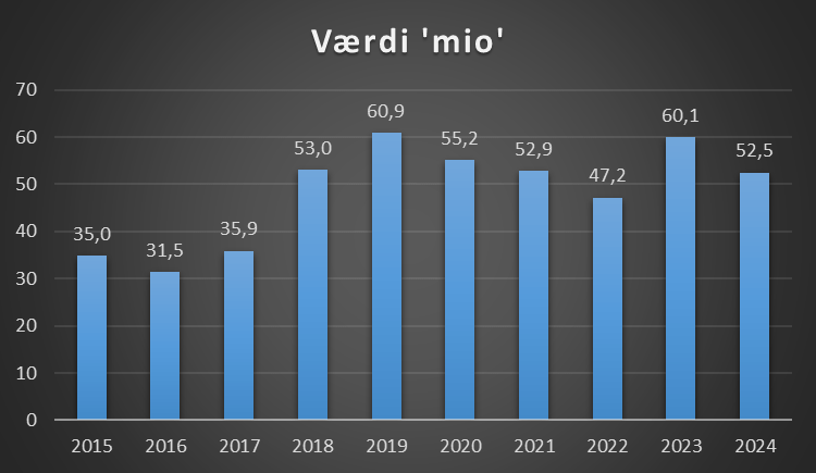 | Seneste 10 år | -61,2 mio |